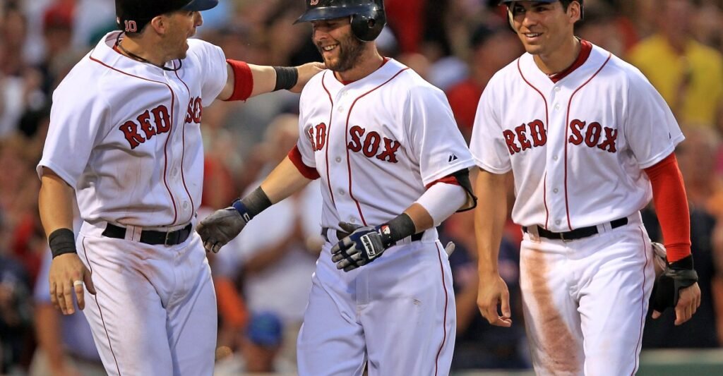 (070711 Boston, MA) Boston Purple Sox shortstop Marco Scutaro celebrates second baseman Dustin Pedroia’s three run homer with heart fielder Jacoby Ellsbury within the third inning of a MLB sport towards the Baltimore Orioles at Fenway Park Thursday, July 7, 2011. Workers Picture by Matt Stone (Picture by MediaNews Group/Boston Herald by way of Getty Photos)(070711 Boston, MA) Boston Purple Sox shortstop Marco Scutaro celebrates second baseman Dustin Pedroia’s three run homer with heart fielder Jacoby Ellsbury within the third inning of a MLB sport towards the Baltimore Orioles at Fenway Park Thursday, July 7, 2011. Workers Picture by Matt Stone(070711 Boston, MA) Boston Purple Sox shortstop Marco Scutaro celebrates second baseman Dustin Pedroia’s three run homer with heart fielder Jacoby Ellsbury within the third inning of a MLB sport towards the Baltimore Orioles at Fenway Park Thursday, July 7, 2011. Workers Picture by Matt Stone (Picture by MediaNews Group/Boston Herald by way of Getty Photos)