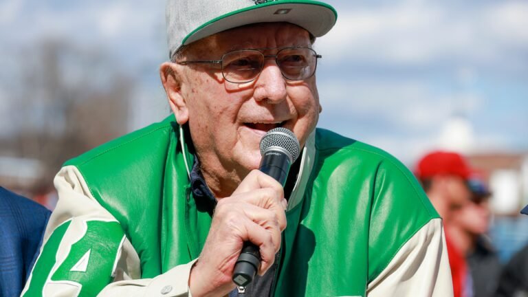 Cousy, 97, attended the ceremony and saluted the group at mid-court earlier than the lads’s basketball group outlasted Lehigh, 76-67.