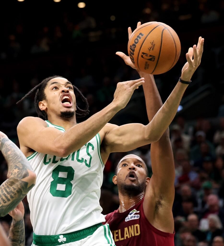 Minott’s main project Wednesday night time was 6-foot-11 Evan Mobley, an All-Star, second-team All-Professional and NBA Defensive Participant of the Yr final season. Although Mobley posted a good double-double (19 factors, 11 rebounds, two blocks), he shot simply 36.8% from the sector, and practically all of his offensive manufacturing got here in opposition to different Celtics defenders.